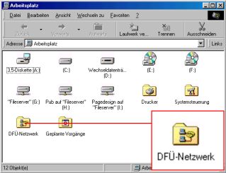 Das Fenster schließt sich und Sie befinden sich wieder im Fester DFÜ-Netzwerk.