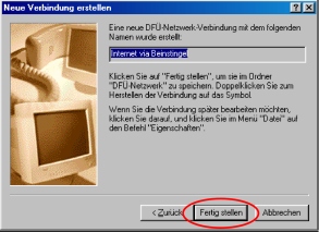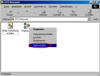 - Das DFÜ-Netzwerk sollte nun installiert sein.
