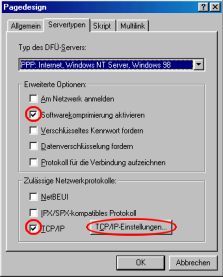 Nur |TCP/IP| und |Softwarekomprimierung aktivieren| dürfen selektiert sein.