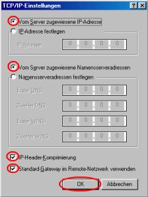 9. Netzwerkeinstellungen des DFÜ-Netzwerkes.